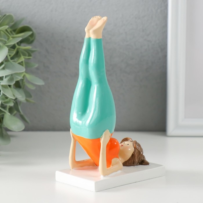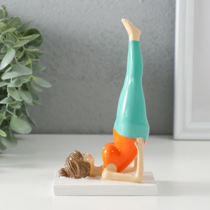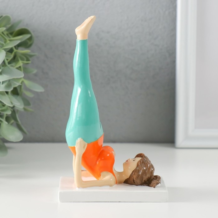 Сувенир полистоун "Пышечка - йога поза берёзка" оранжево-бирюзовая 9х5х14,5 см