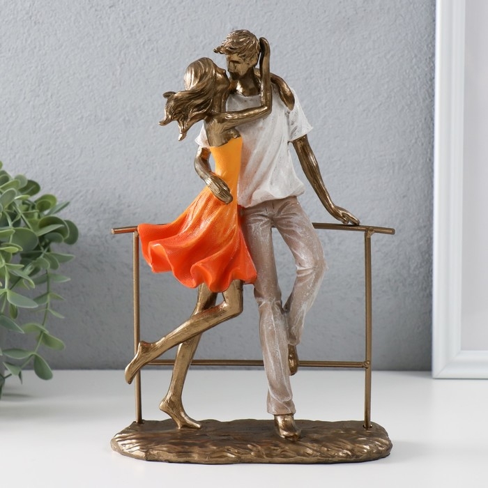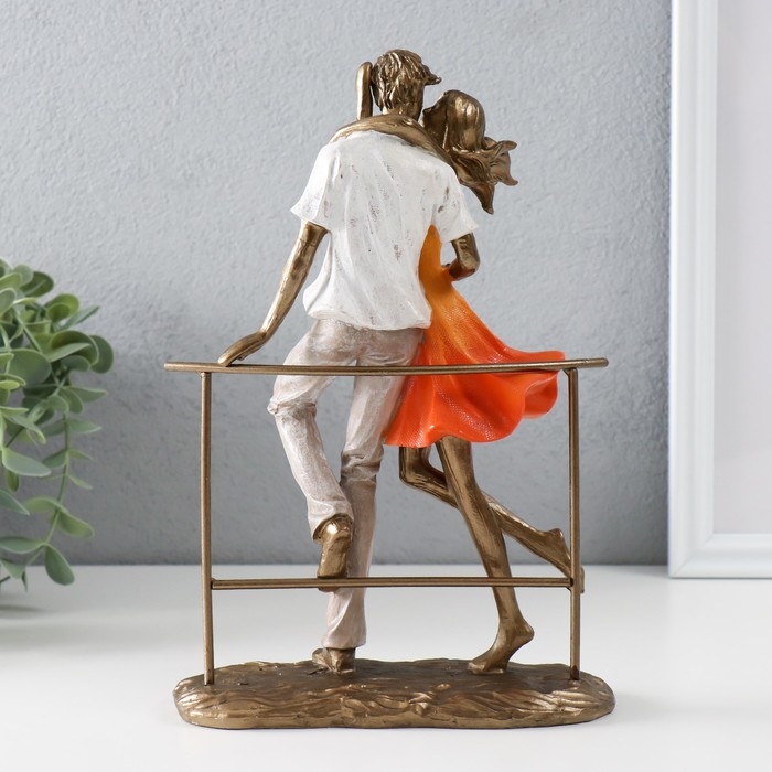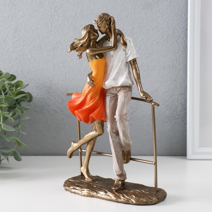 Сувенир полистоун "Поцелуй на мосту" бронза, оранжево-белый 17х8х25 см