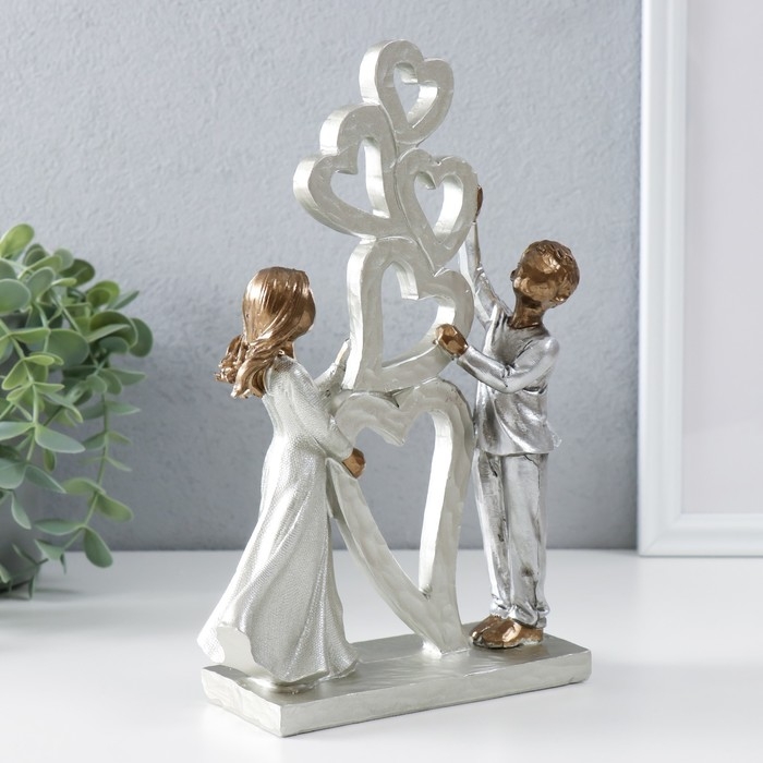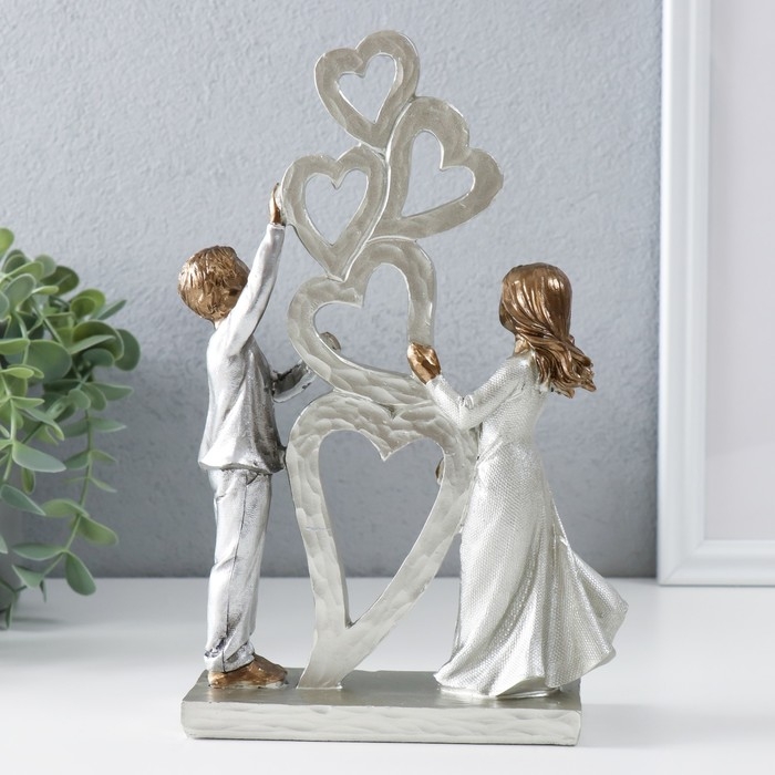 Сувенир полистоун "Малыши и инсталяция с сердцами" бронза, серебро 15,5х6х23 см
