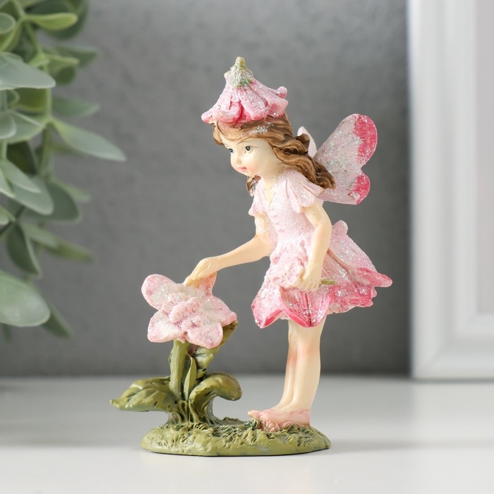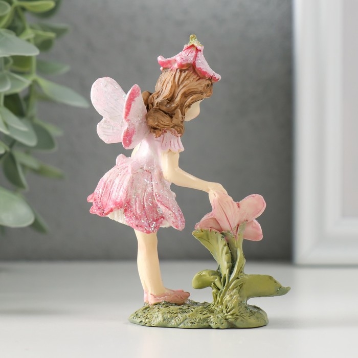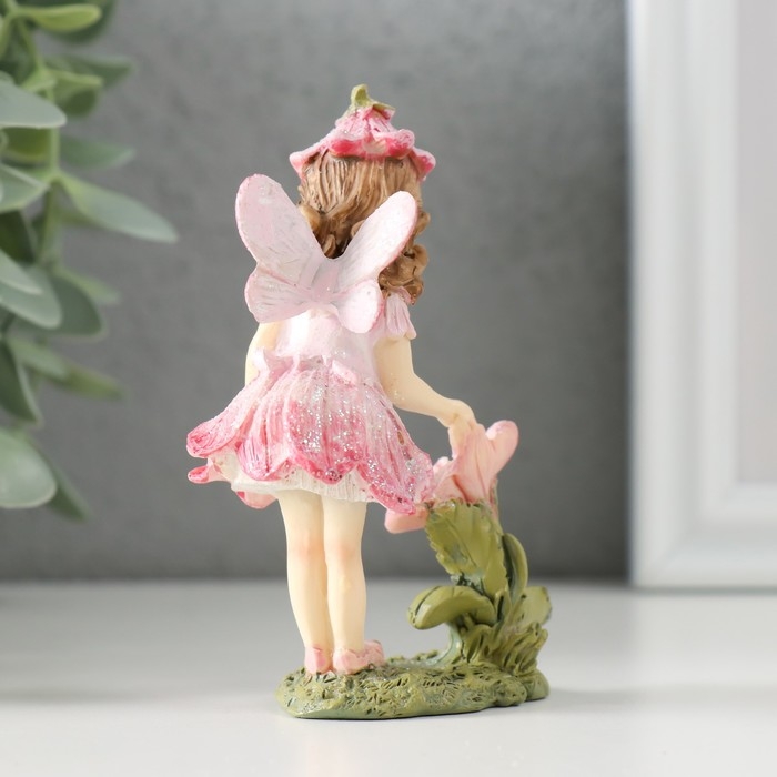 Сувенир полистоун "Девочка-колокольчик с крылышками, на полянке с цветком" 7х4х9,5 см