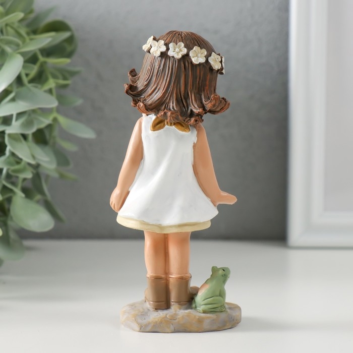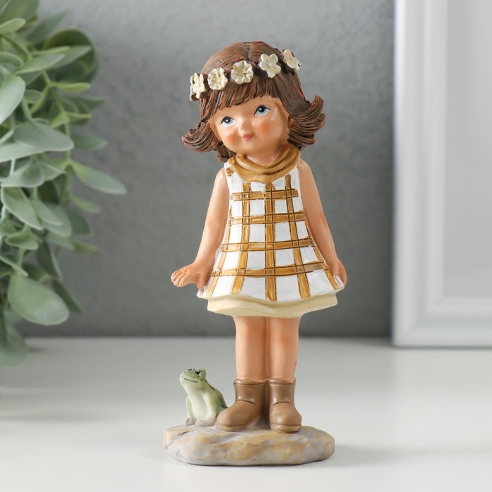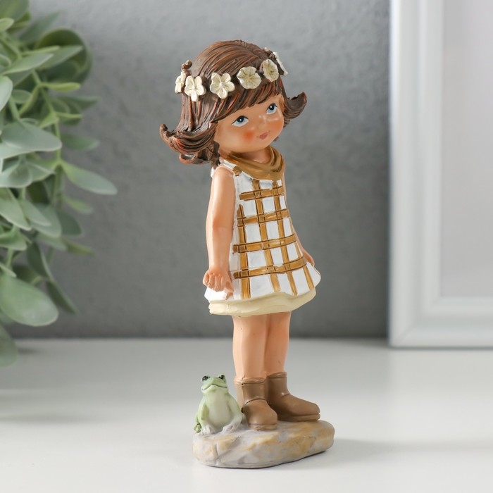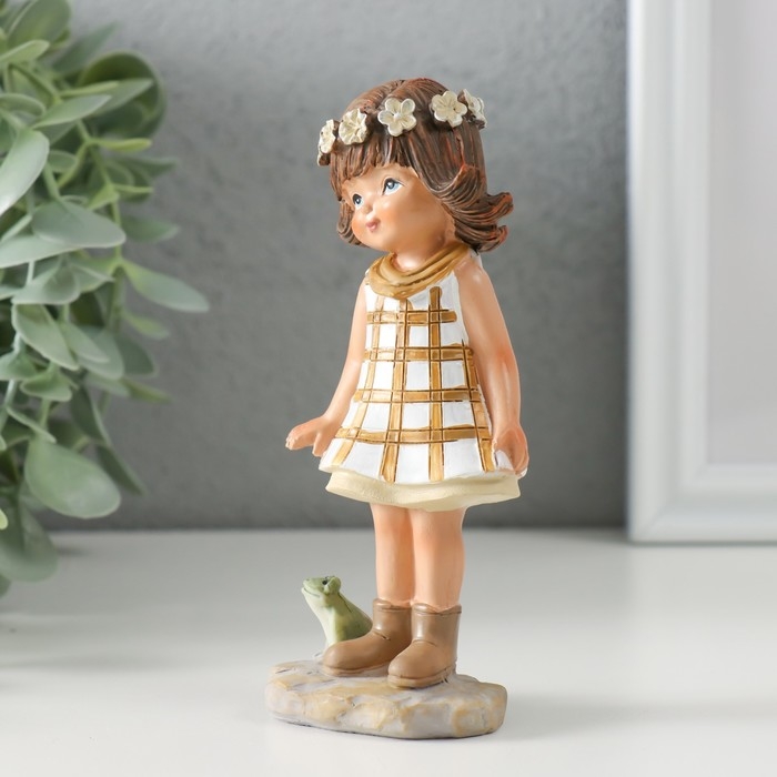 Сувенир полистоун "Малышка в белом платье в клетку, с лягушкой" 5,5х3,5х12 см