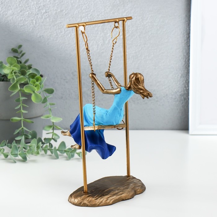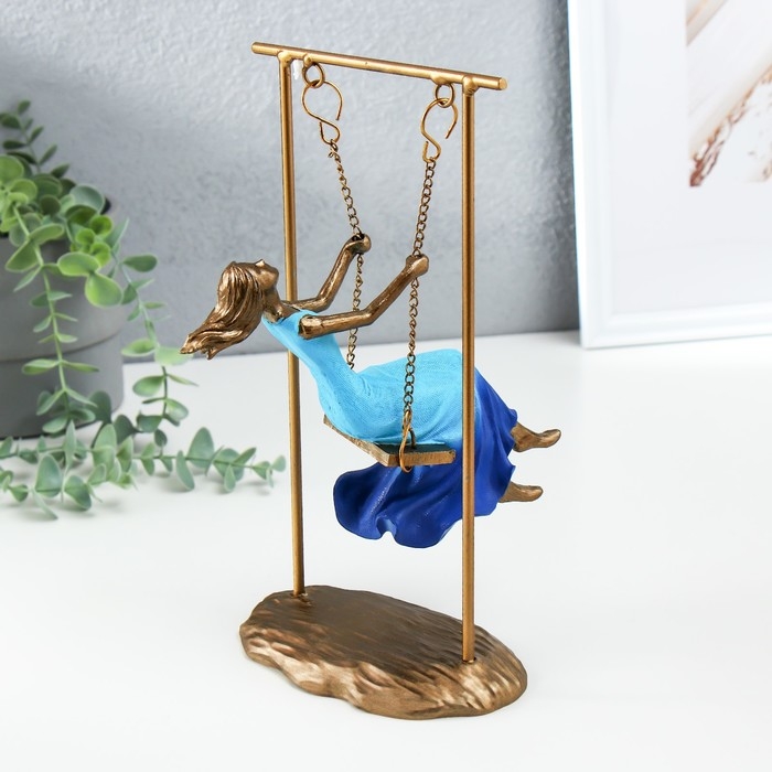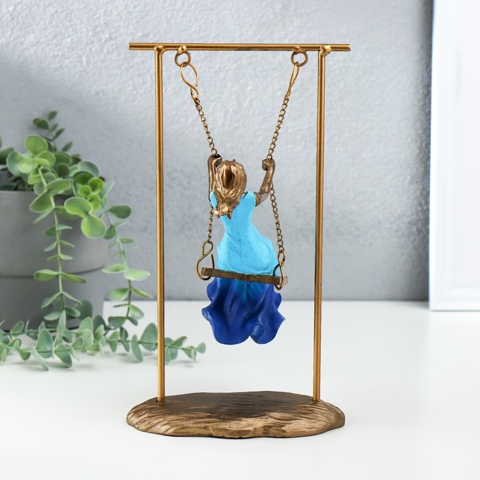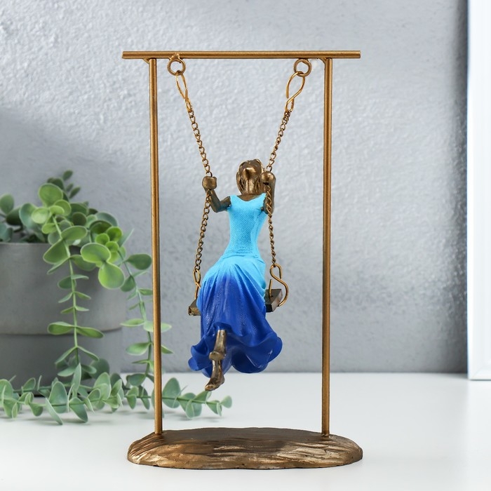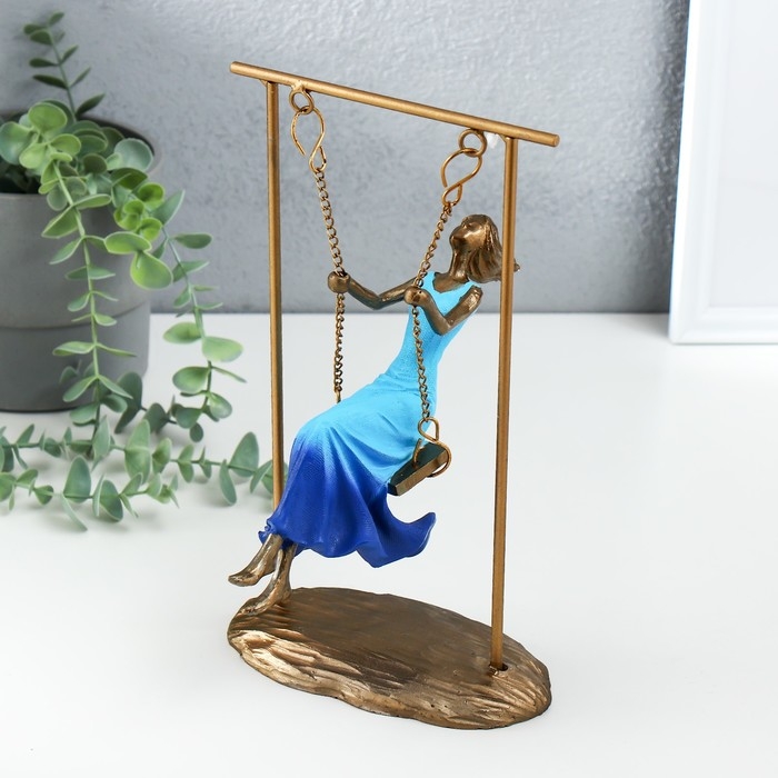 Сувенир полистоун "Девушка в небесно-голубом платье на качелях" бронза 16х11х26 см
