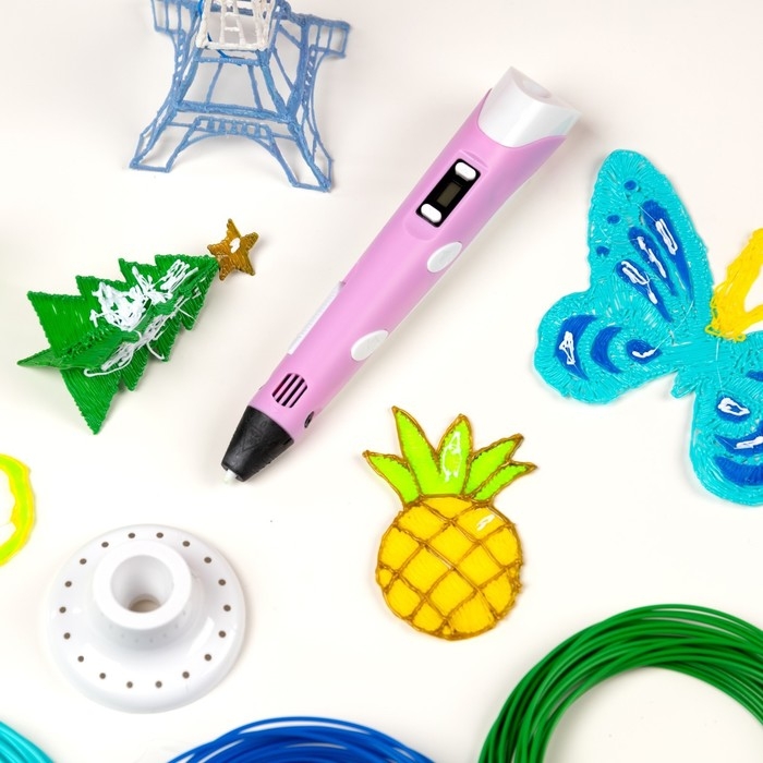 3D ручка Luazon, дисплей, работа с пластиком ABS и PLA, пластик в комплекте, розовая