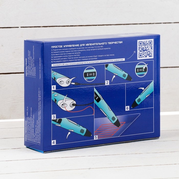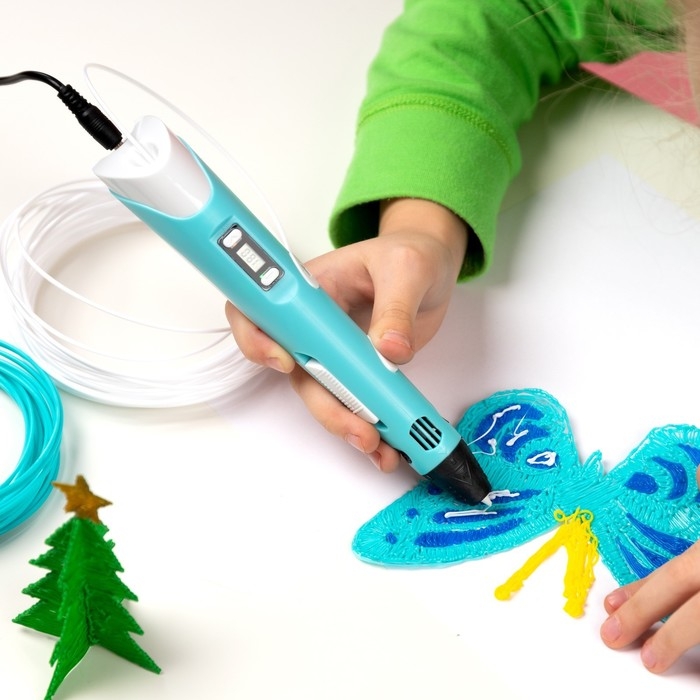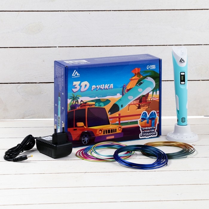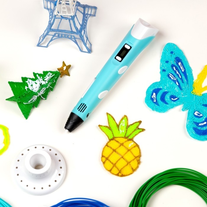 3D ручка Luazon, дисплей, работа с пластиком ABS и PLA, пластик в комплекте, голубая