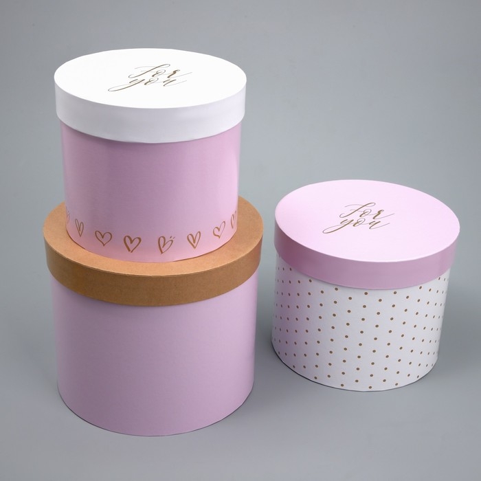 Набор шляпных коробок 3 в 1, упаковка подарочная, «For you», 16 х 16 х 14‒20 х 20 х 17 см