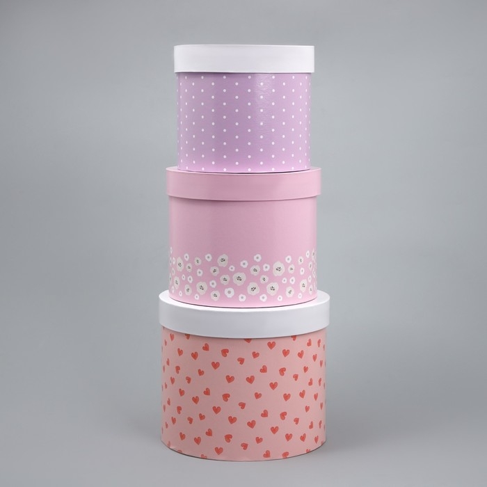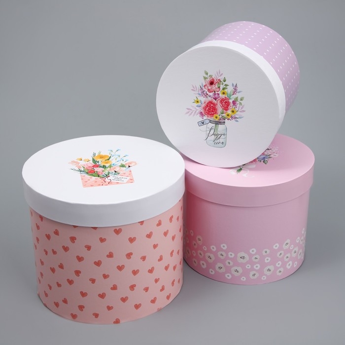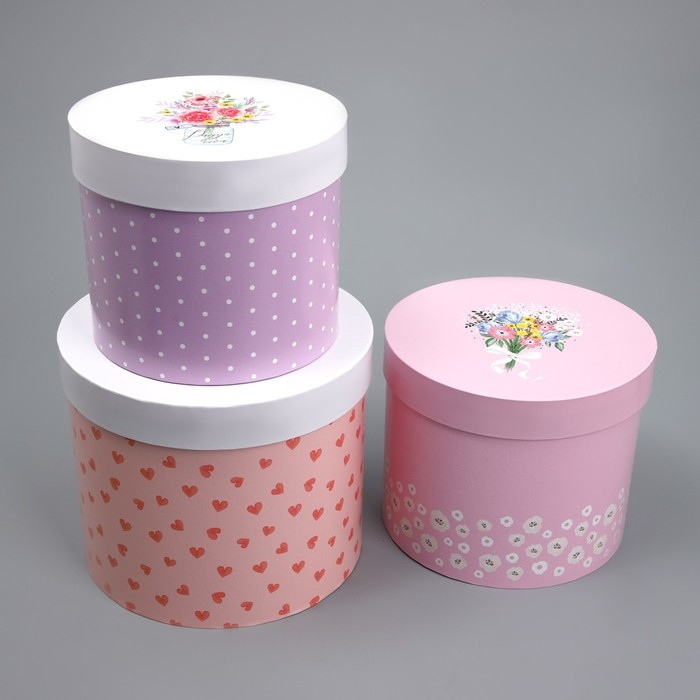Набор шляпных коробок 3 в 1, упаковка подарочная, «Букетики», 16 х 16 х 14‒20 х 20 х 17 см