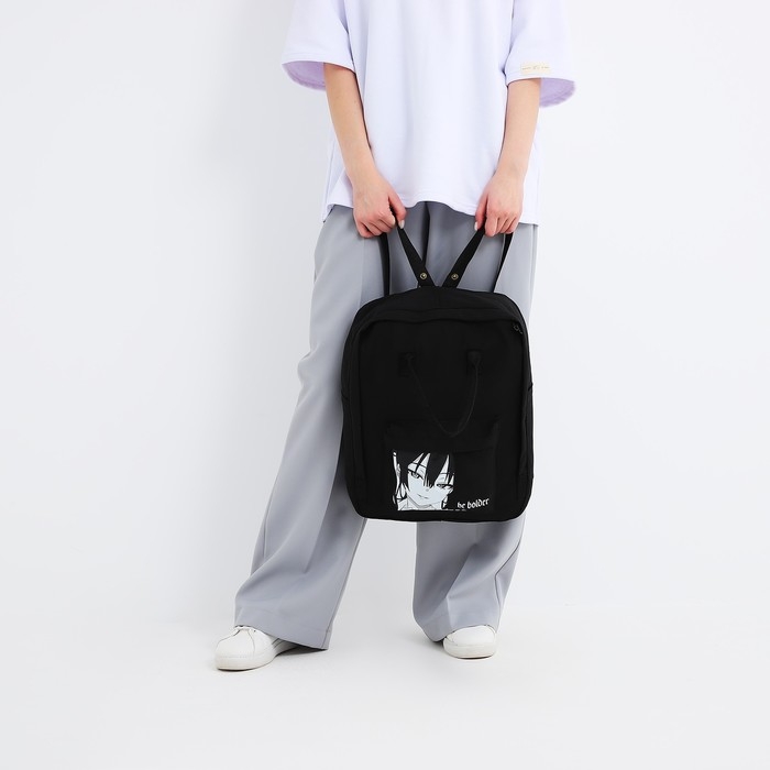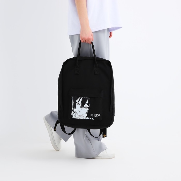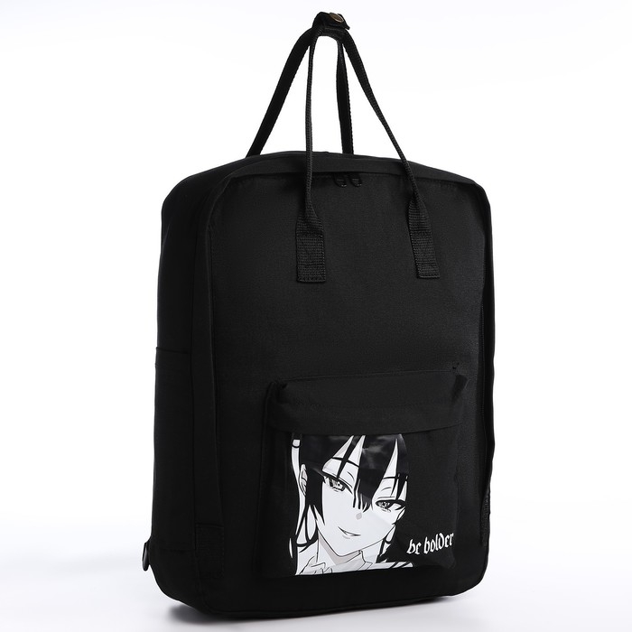 Рюкзак школьный текстильный Anime, 38х27х13 см, цвет чёрный