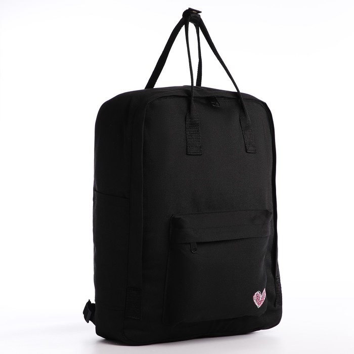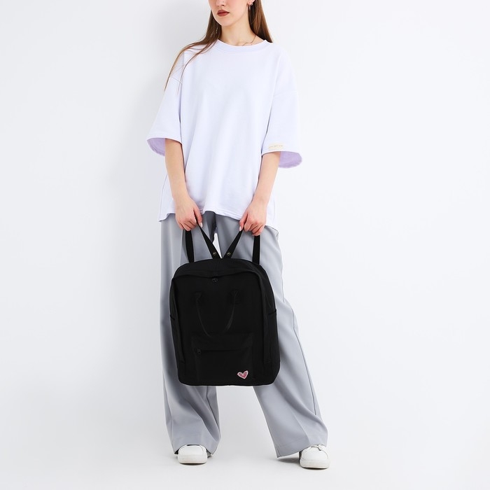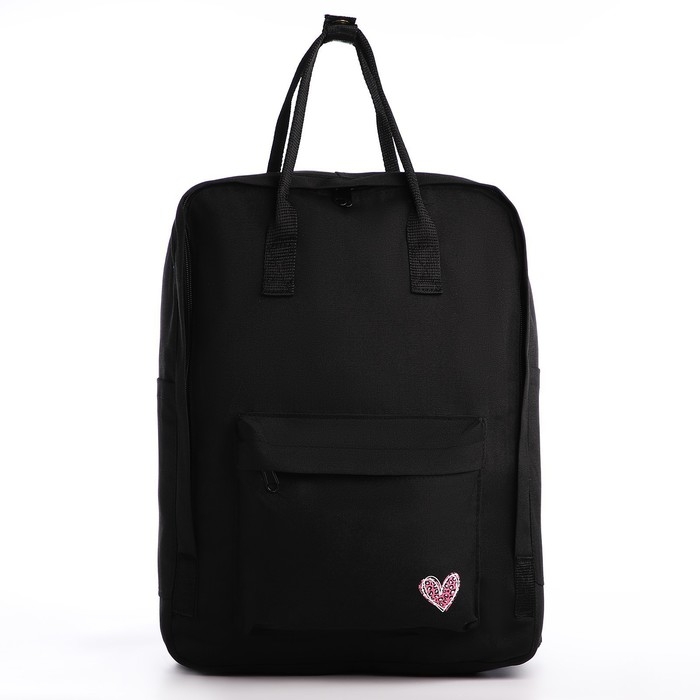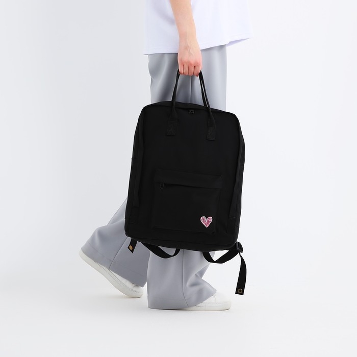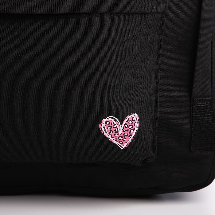 Рюкзак школьный текстильный Love, 38х27х13 см, цвет чёрный