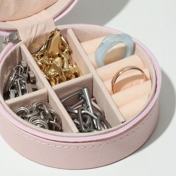 Органайзер для хранения украшений «Шкатулка портативная круг», 9,8×9,8×4,5 см, цвет розовый