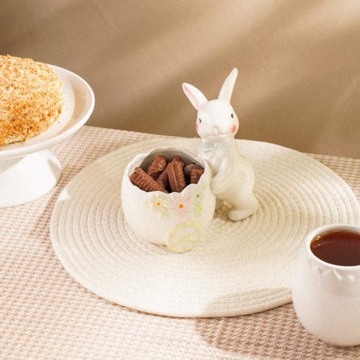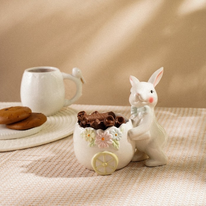 Конфетница керамическая SL Home «Лесные кролики», 17,5×13×16,8 см, цвет белый