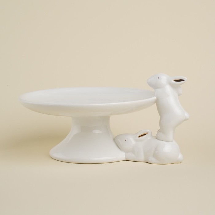 Блюдо сервировочное керамическое SL Home «Лесные кролики», 30,5×25×15,5 см, цвет белый