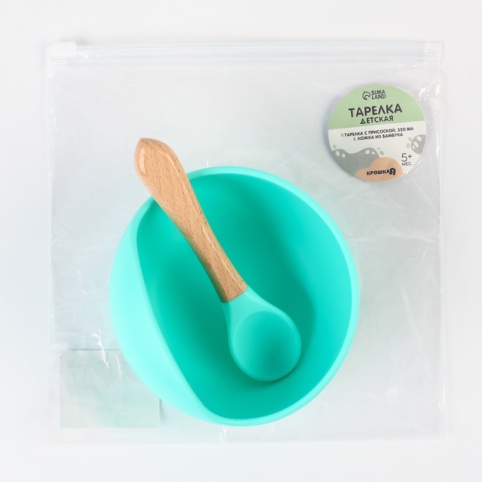 Тарелка детская на присоске, ложка, Крошка Я, бирюзовый