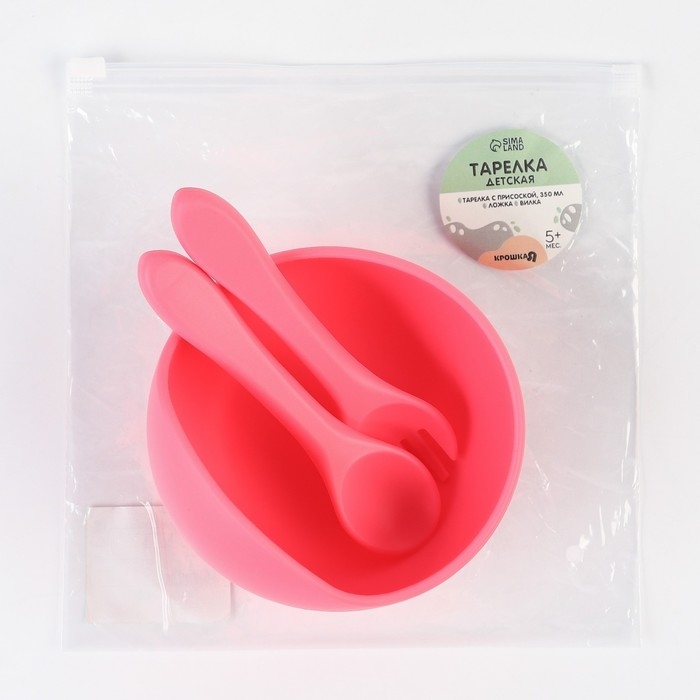 Тарелка детская на присоске, ложка, Крошка Я, цвет розовый