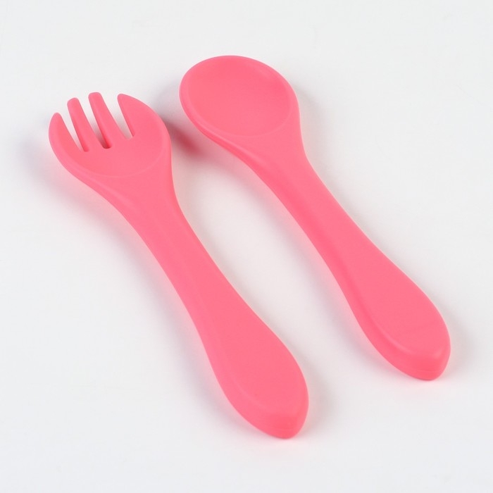 Тарелка детская на присоске и столовые приборы, Крошка Я, розовый