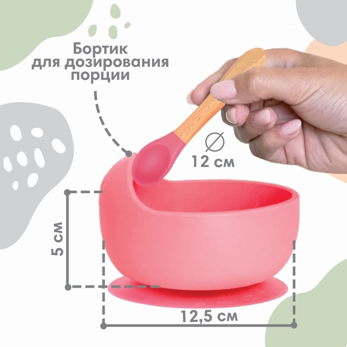 Силиконовая тарелка на присоске для прикорма изготовлена из 100% натурального пищевого силикона, не содержит бисфенол А (BPA free). Мягкий материал посуды не травмирует зубки и дёсны малыша. Подходит детям от 5 мес+. Надёжная присоска позволяет хорошо зафиксировать тарелку на любой гладкой поверхности, и ребёнку будет сложно её перевернуть. Набор детской посуды безопасен для малышей. Силиконовая тарелка на присоске не имеет запаха, легко моется, не впитывает запахи и не окрашивается. Приятная на ощупь. Специальная умная форма силиконовой детской тарелки помогает зачерпнуть пищу, обучая самостоятельно кушать. Посуду из силикона можно мыть в посудомоечной машине и разогревать в микроволновой печи.