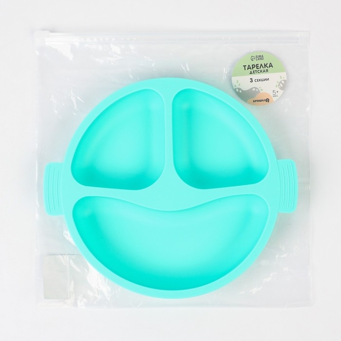Тарелка детская 3 секции, удобные ручки, Крошка Я, 22,5х19,5х3, бирюзовый