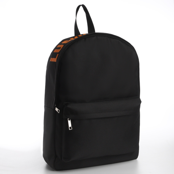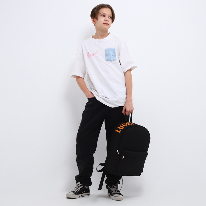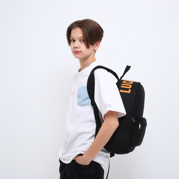 Рюкзак школьный текстильный с печатью на верхней части LUCKY, 38х29х11 см, цвет чёрный