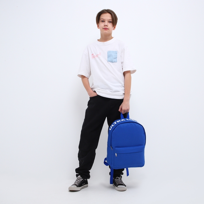 Рюкзак школьный текстильный с печатью на верхней части LIGHT, 38х29х11 см, цвет синий
