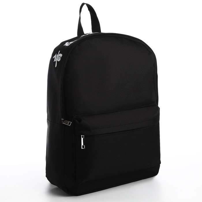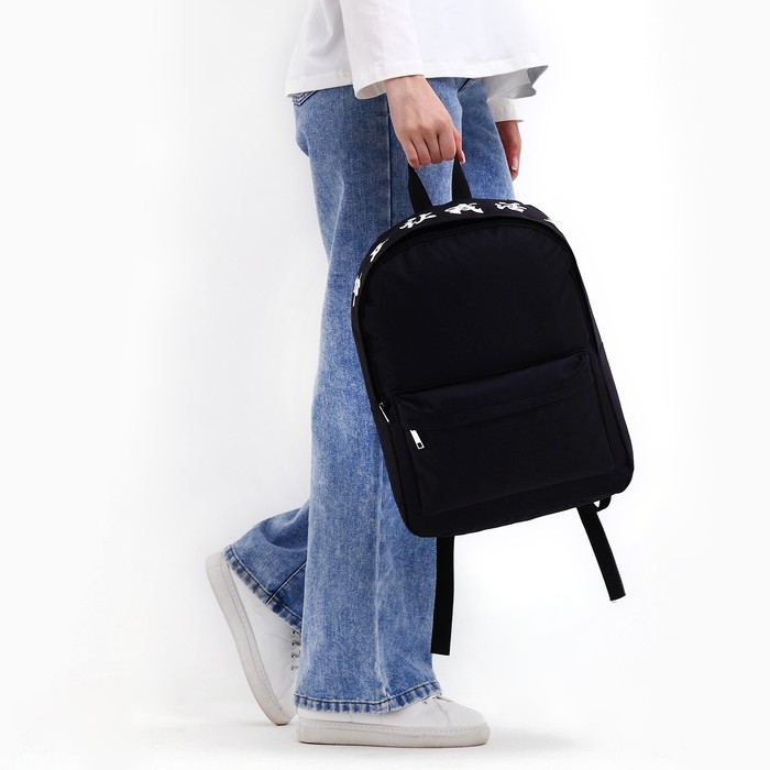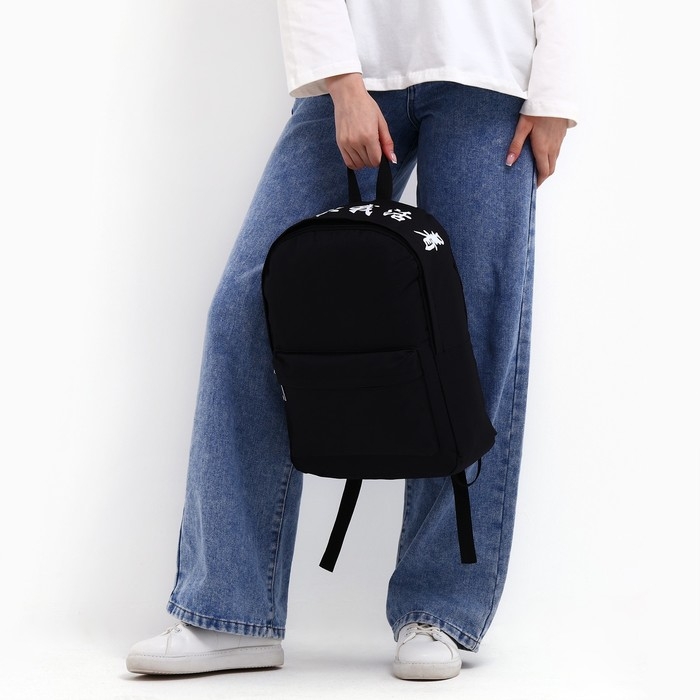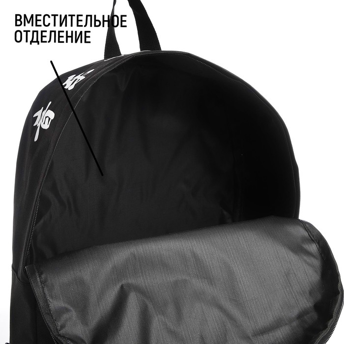 Рюкзак школьный текстильный с печатью на верхней части, 38х29х11 см, цвет чёрный