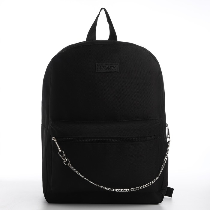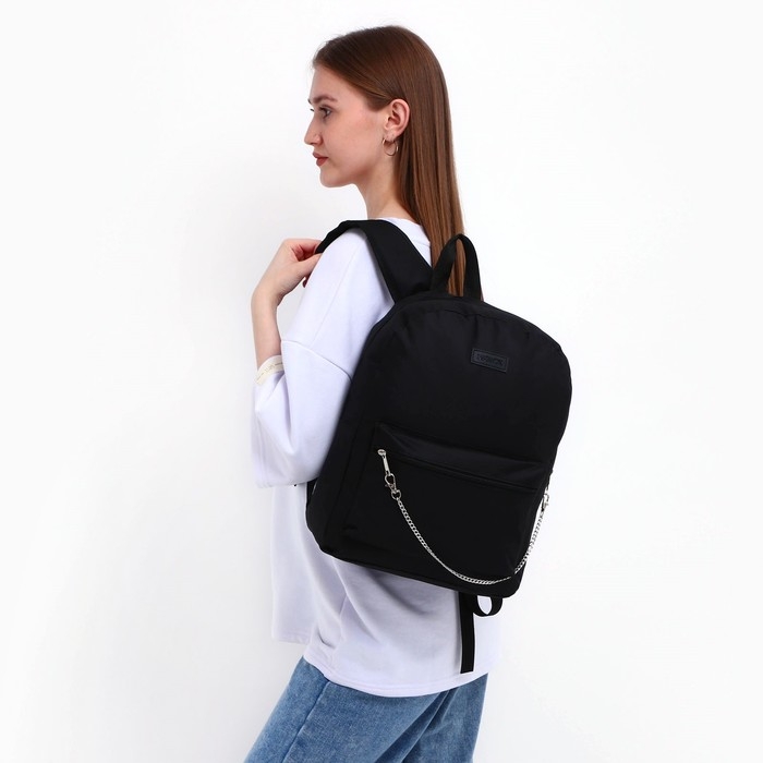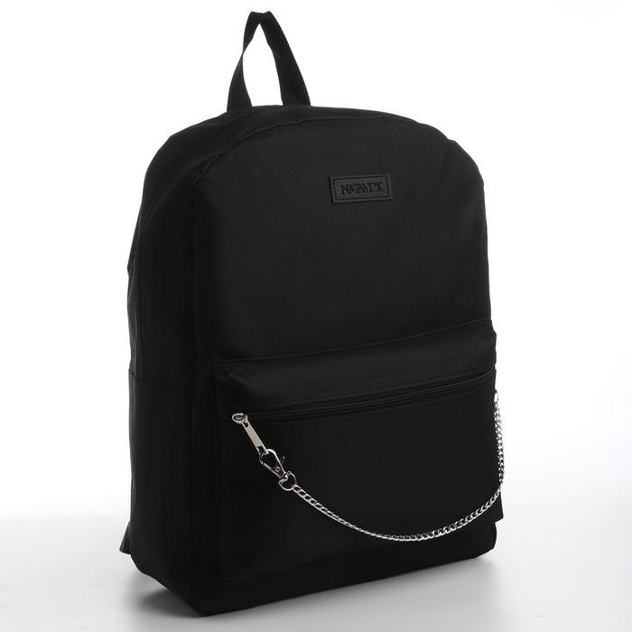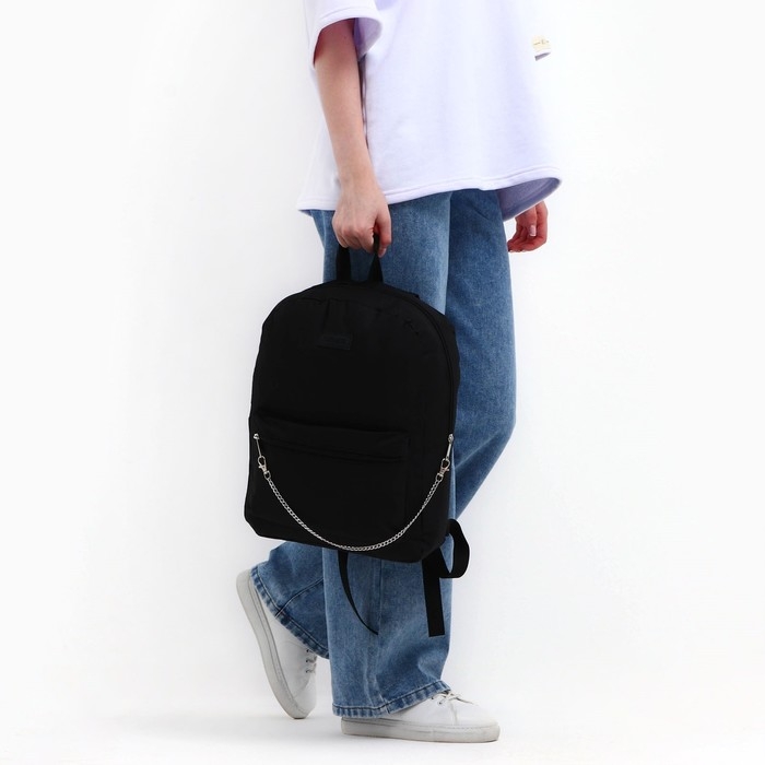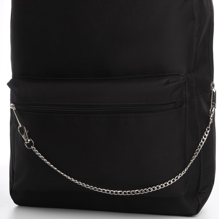 Рюкзак школьный текстильный с цепочкой, 38х29х11 см, цвет чёрный