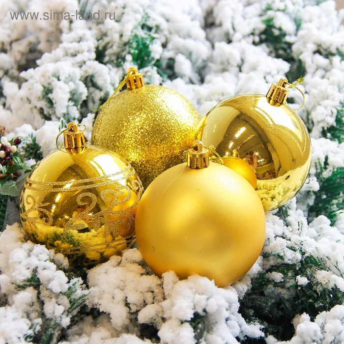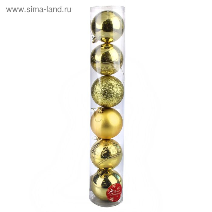 Набор шаров пластик d-8 см, 6 шт "Узор ассорти" золото