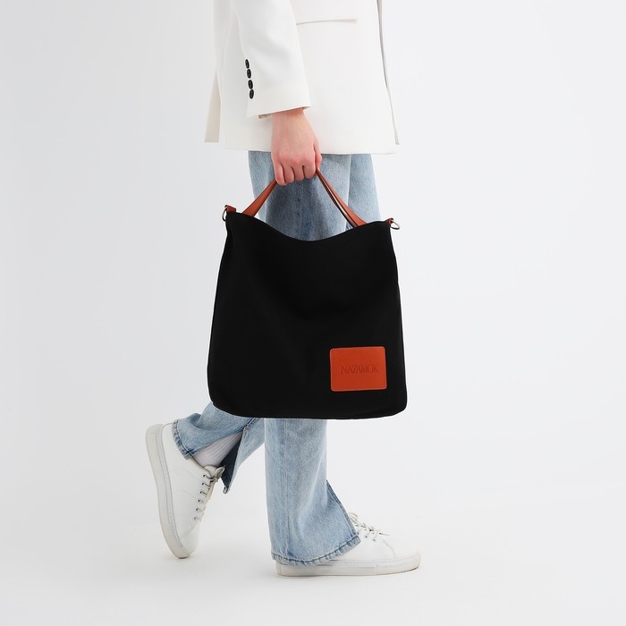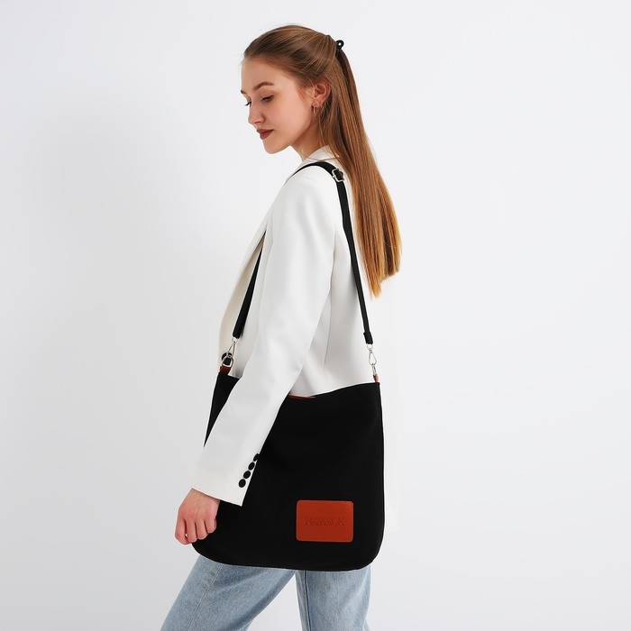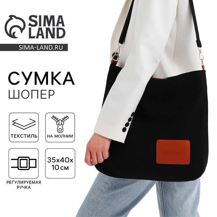 Шопер текстильный NK , 40х35х10 см, отдел на молнии, цвет чёрный