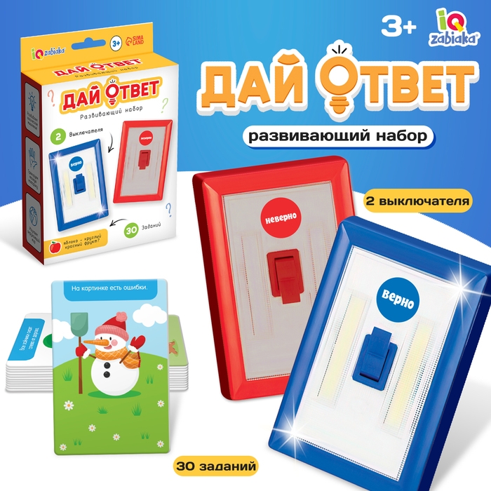 Развивающий набор «Дай ответ» предназначен для активного изучения мира. С его помощью малыш получит новые знания, научится размышлять и давать ответ, а также потренирует логическое мышление и моторику, включая и выключая тумблеры.