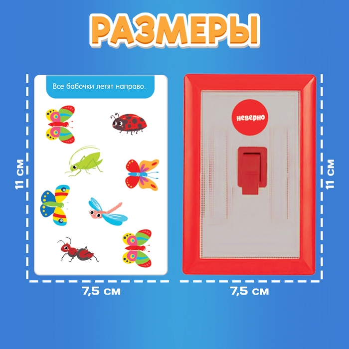 - Попросите малыша дать ответ, включив нужный выключатель: синий, если утверждение на карточке правильное, и красный, если это не так.