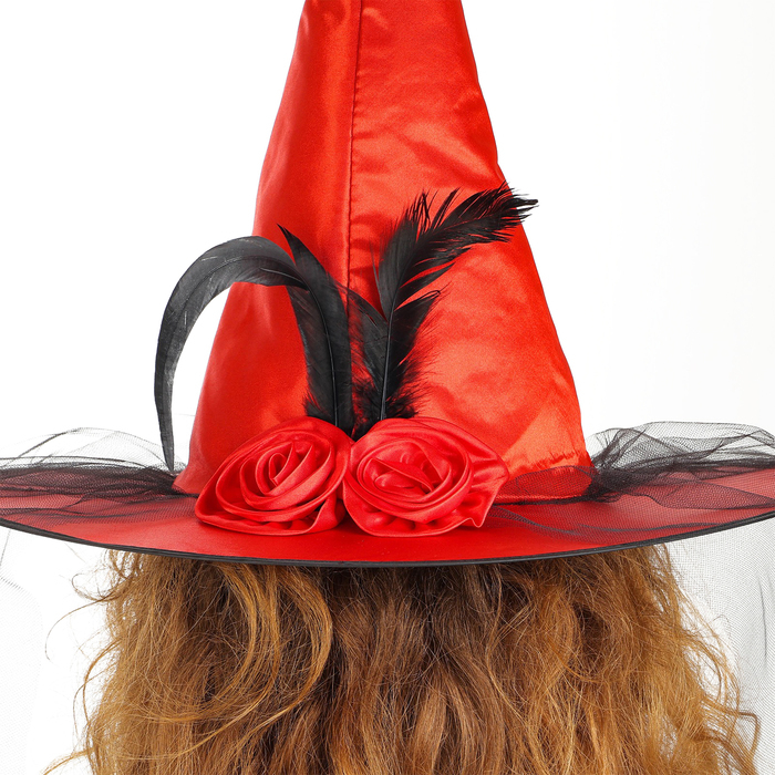 Карнавальная шляпа «Ведьмочка», с фатой, цвет красный
