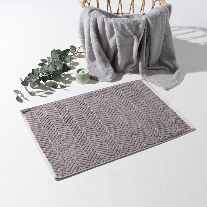 Коврик махровый Этель Lines, цв. светло-серый, 50х70 см, 100% хлопок, 750 г/м2