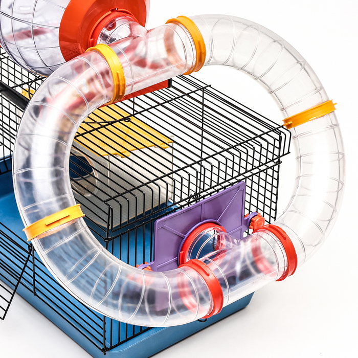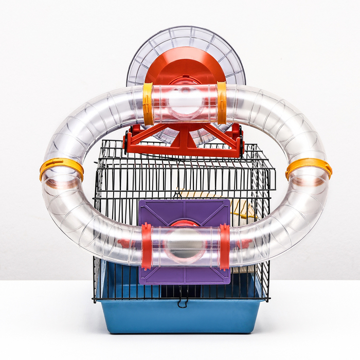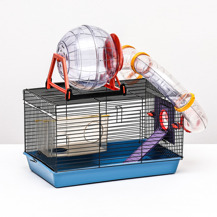 Клетка для грызунов малая с лабиринтом, колесом и домом, 40 x 25 х 22 см, микс цветов