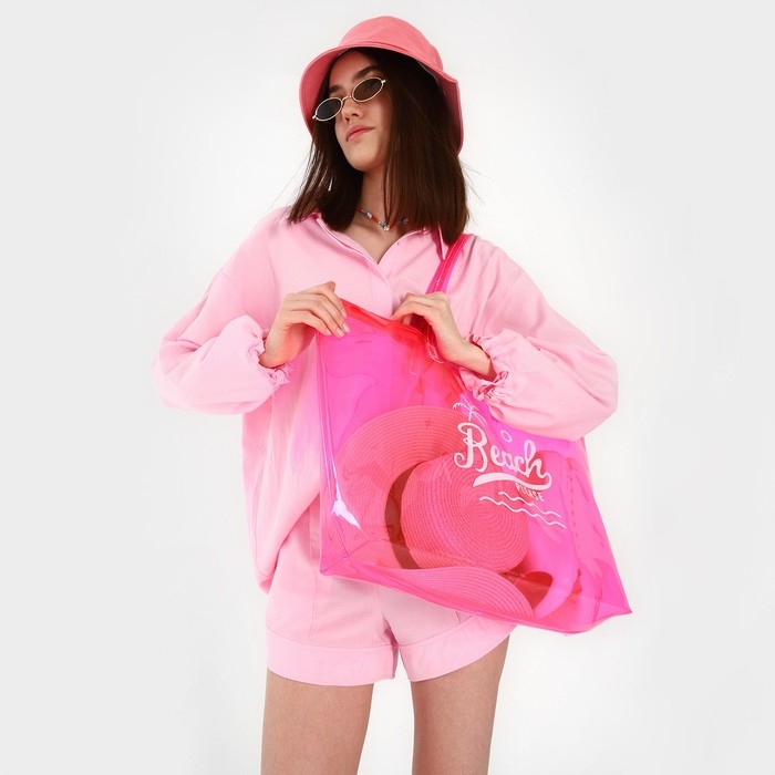 Сумка женская пляжная Beach please, 50х35х11 см, розовый цвет