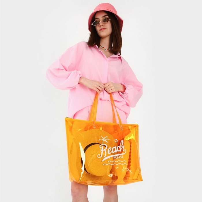 Сумка женская пляжная Beach please, 50х35х11 см, оранжевый цвет