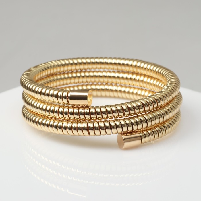 Браслет-пружинка «Рельеф» 3 ряда, цвет золото, d=6,5 см