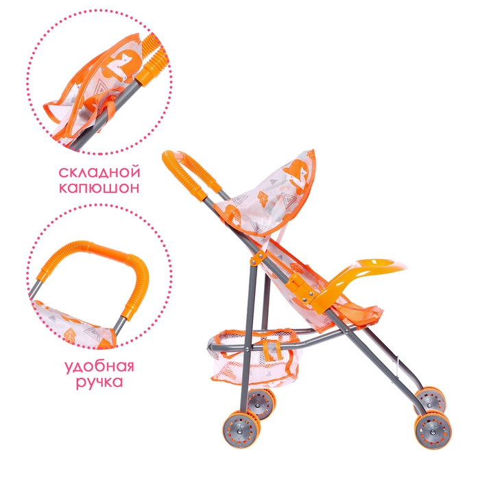 Коляска летняя для кукол «Лисички», металлический каркас, столик