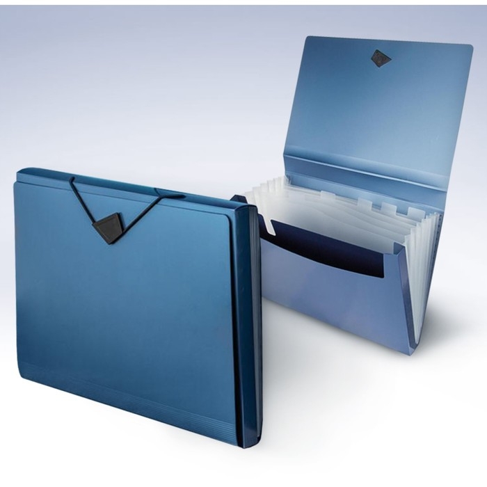 Папка-картотека, А4, 6 отделений, 800 мкм, Calligrata TOP "Mistral", на резинке, тиснение, синий металлик