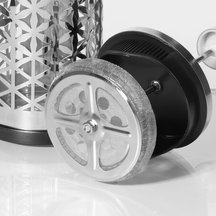 Стеклянный френч-пресс хорошо держит тепло, раскрывает вкус любимых напитков. Материал не вступает в реакцию с жидкостью, не не впитывает запахи и не окисляется. Металлический поршень и рельефный каркас из нержавеющей стали обеспечивают прочность изделия.Принцип работы френч-пресса прост: