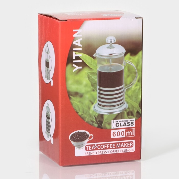 Чайник заварочный френч - пресс «Сейхо», 600 мл, стекло, нержавеющая сталь
