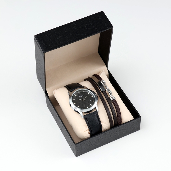 Мужской подарочный набор "Якорь" 2 в 1: наручные часы, браслет