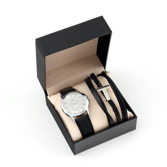 Мужской подарочный набор "Крест" 2 в 1: наручные часы, браслет
