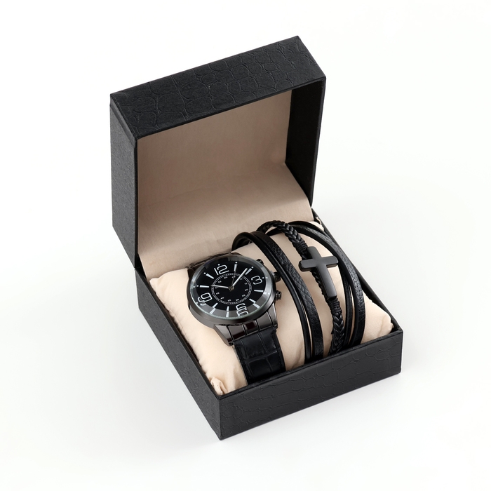 Мужской подарочный набор "Крест" 2 в 1: наручные часы, браслет