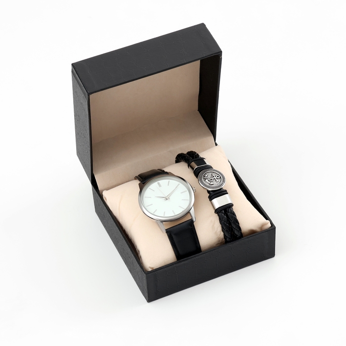 Мужской подарочный набор "Брок" 2 в 1: наручные часы, браслет
