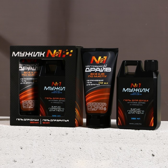 Подарочный набор косметики «Мужику №1», гель для душа 300 мл и гель для бритья 110 мл, HARD LINE