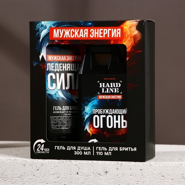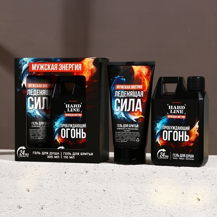 Подарочный набор косметики «Пробуждающий огонь», гель для душа 300 мл и гель для бритья 110 мл, HARD LINE