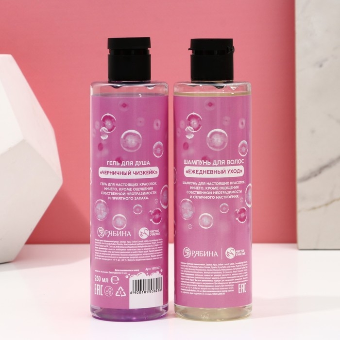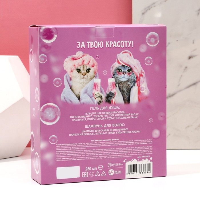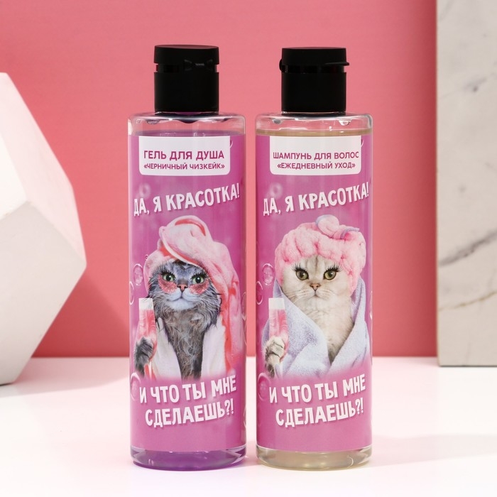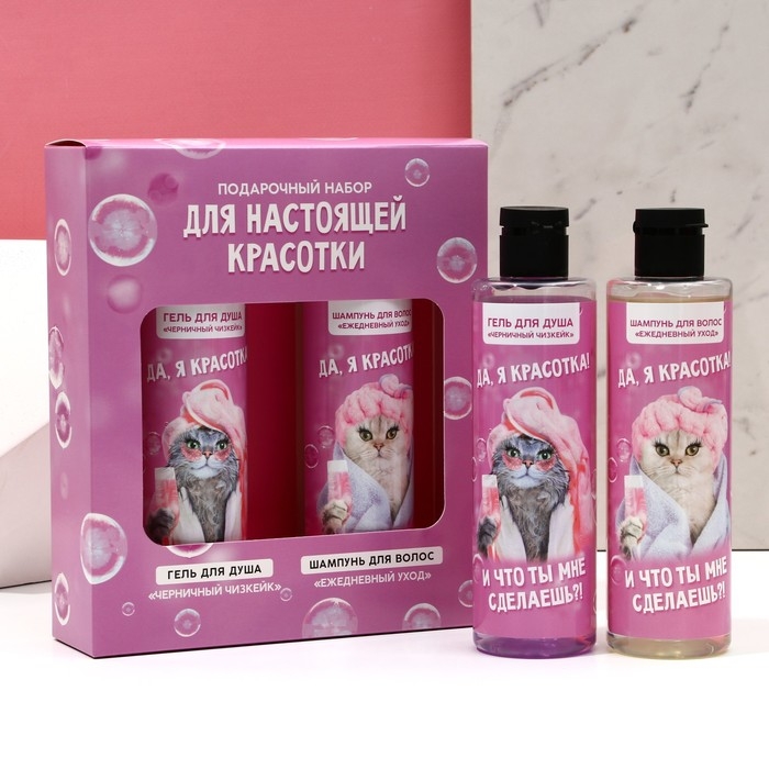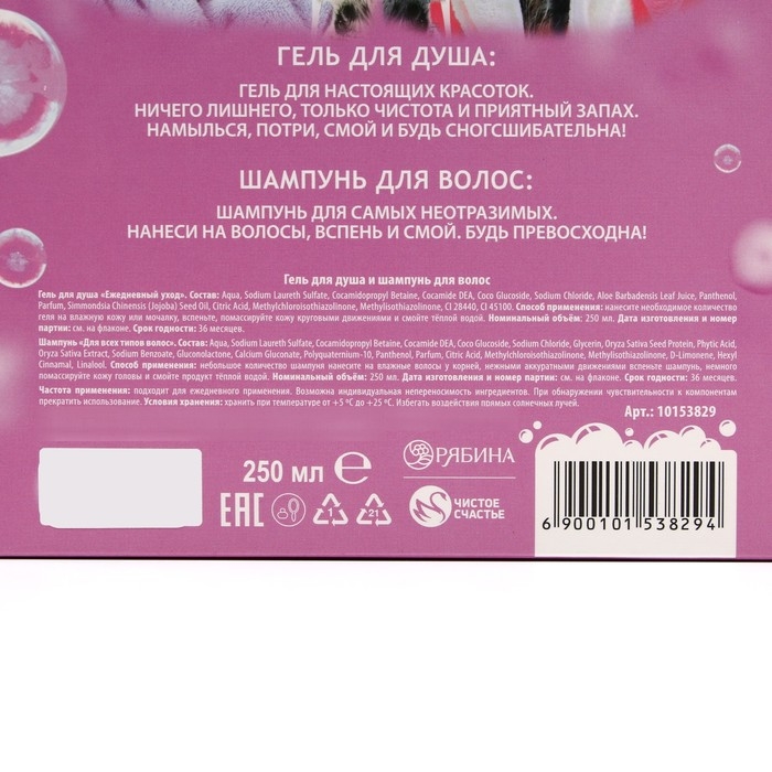Подарочный набор косметики «Для настоящей красотки», гель для душа 250 мл и шампунь для волос 250 мл, ЧИСТОЕ СЧАСТЬЕ