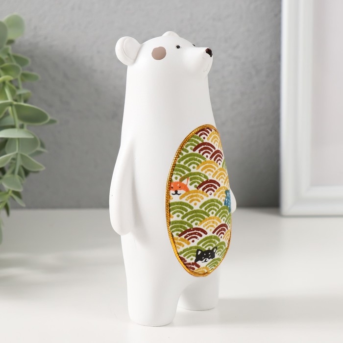 Сувенир полистоун "Белый мишка с текстилем на животе" 8х5,5х14,3 см