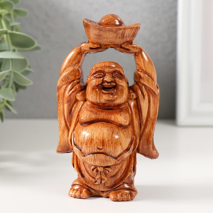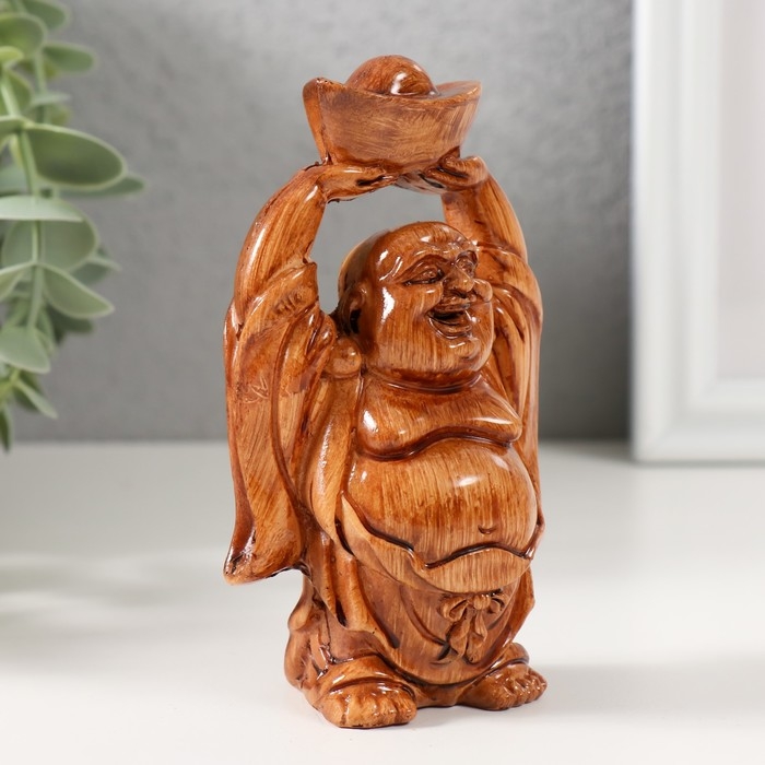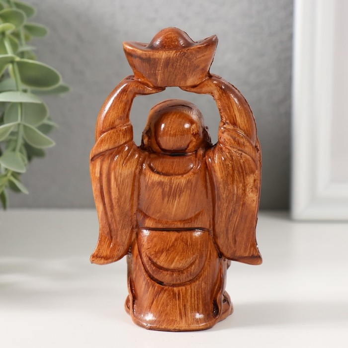 Нэцкэ полистоун под дерево "Хотей. Со слитком золота" 6,7х4,3х11 см