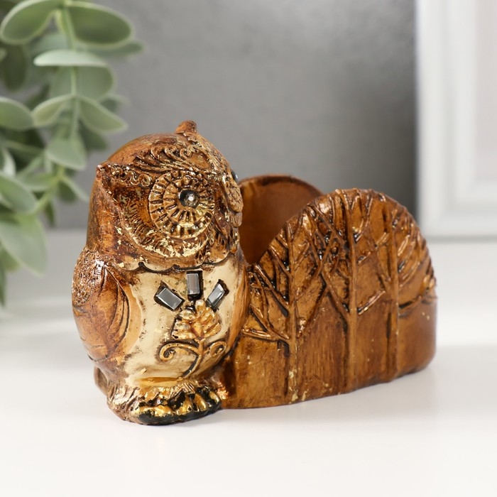 Сувенир полистоун визитница "Совушка в лесу" 10,5х4,5х7,5 см
