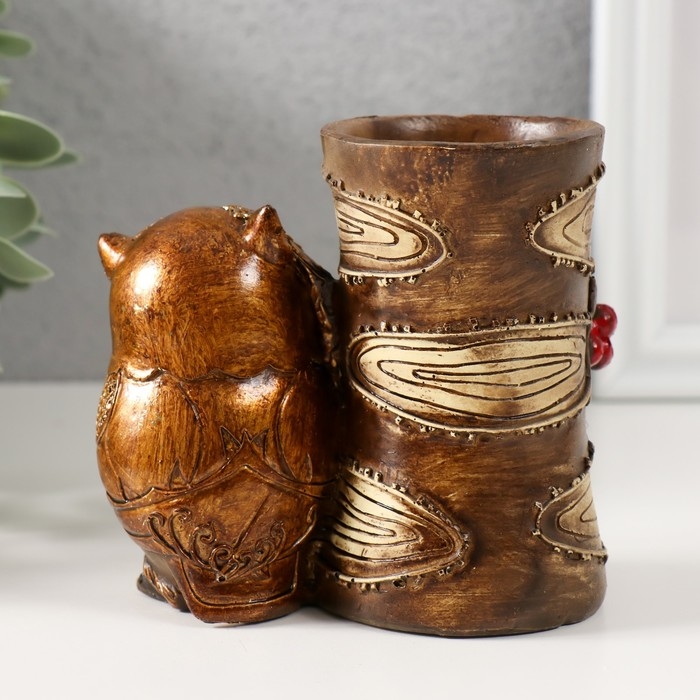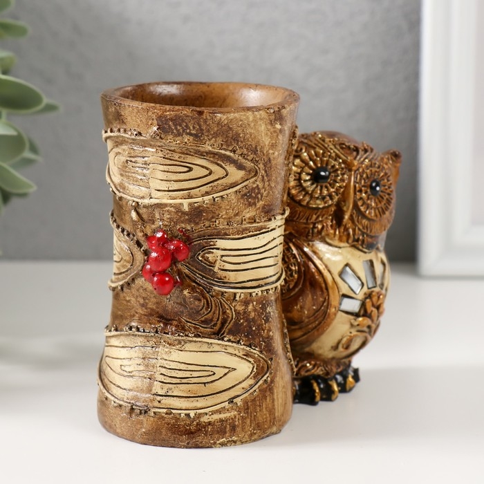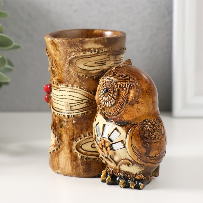 Сувенир полистоун карандашница "Совушка и пеньки" 11х6,2х10 см