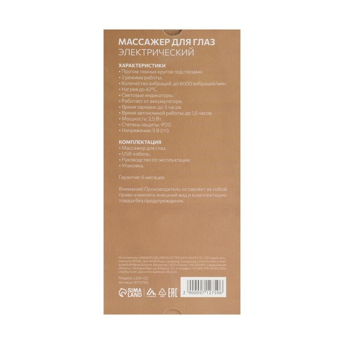 Массажёр для глаз Luazon LEM-05, 2.5 Вт, против темных кругов под глазами, АКБ